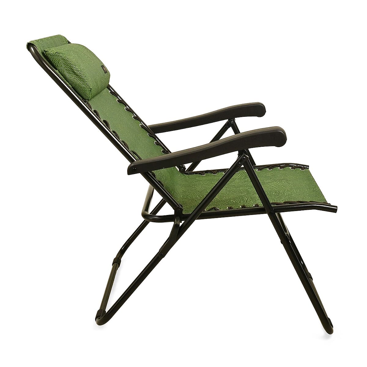 Bliss Reclinable Sling Patio Chair with Pillow -Green Banana Leaf