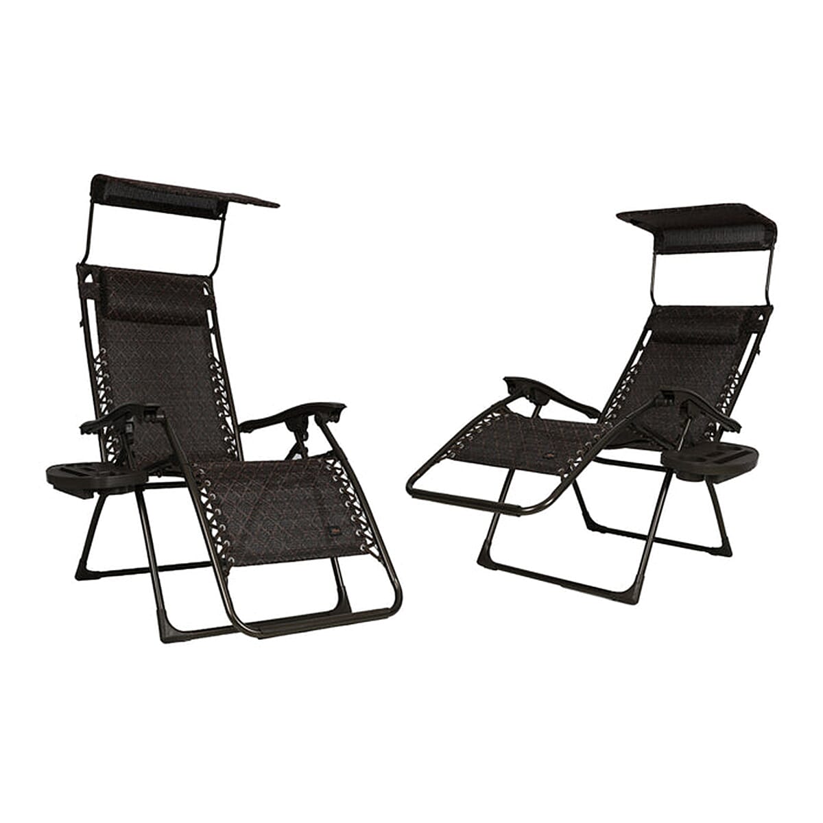 Relax in style with the Bliss set of 2 gravity-free recliners. Designed for ultimate comfort, each chair includes a pillow, canopy, and tray. These recliner chairs are perfect for your patio or garden, offering a luxurious seating experience. You'll enjoy unparalleled comfort while unwinding outdoors.