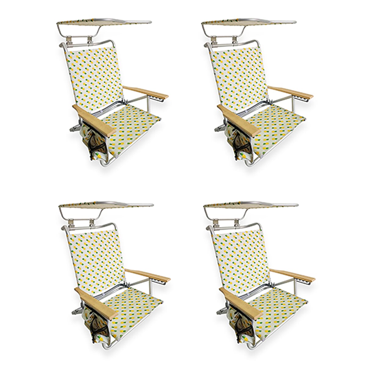 Bliss Set of 4 Folding Beach Chairs with Canopy, Pocket, Cup Holder & Carry Straps - Pineapple
