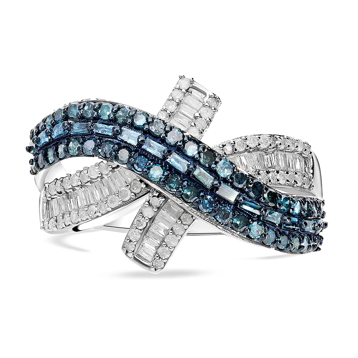 Blue and White Diamond 1.00 ctw Ring in Platinum Over Sterling Silver (Size 9.0)