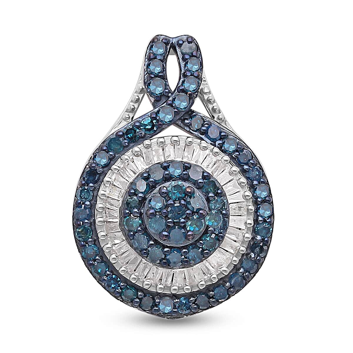 Blue and White Diamond Pendant in Rhodium and Platinum Over Sterling Silver 1.00 ctw