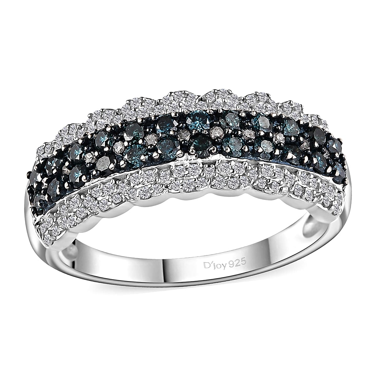 Blue and White Diamond Ring in Platinum Over Sterling Silver (Size 8.0) 1.00 ctw