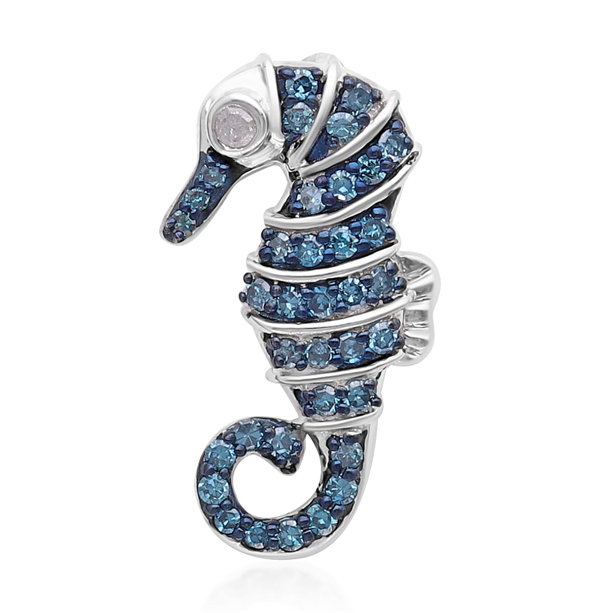 Blue and White Diamond Seahorse Pendant in Rhodium and Platinum Over Sterling Silver 0.30 ctw