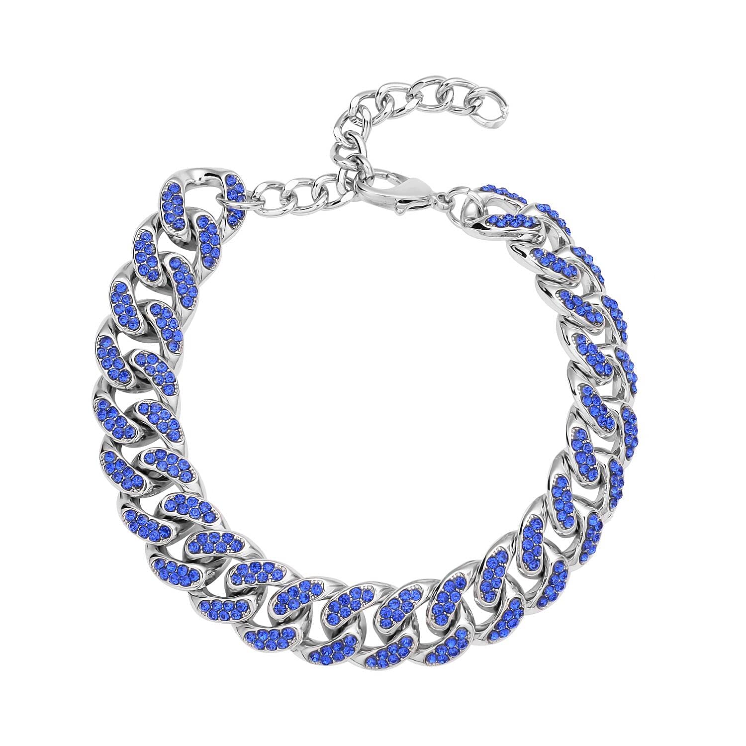 Blue Austrian Crystal Curb Link Chain Bracelet in Silvertone (7.50-9.50In)
