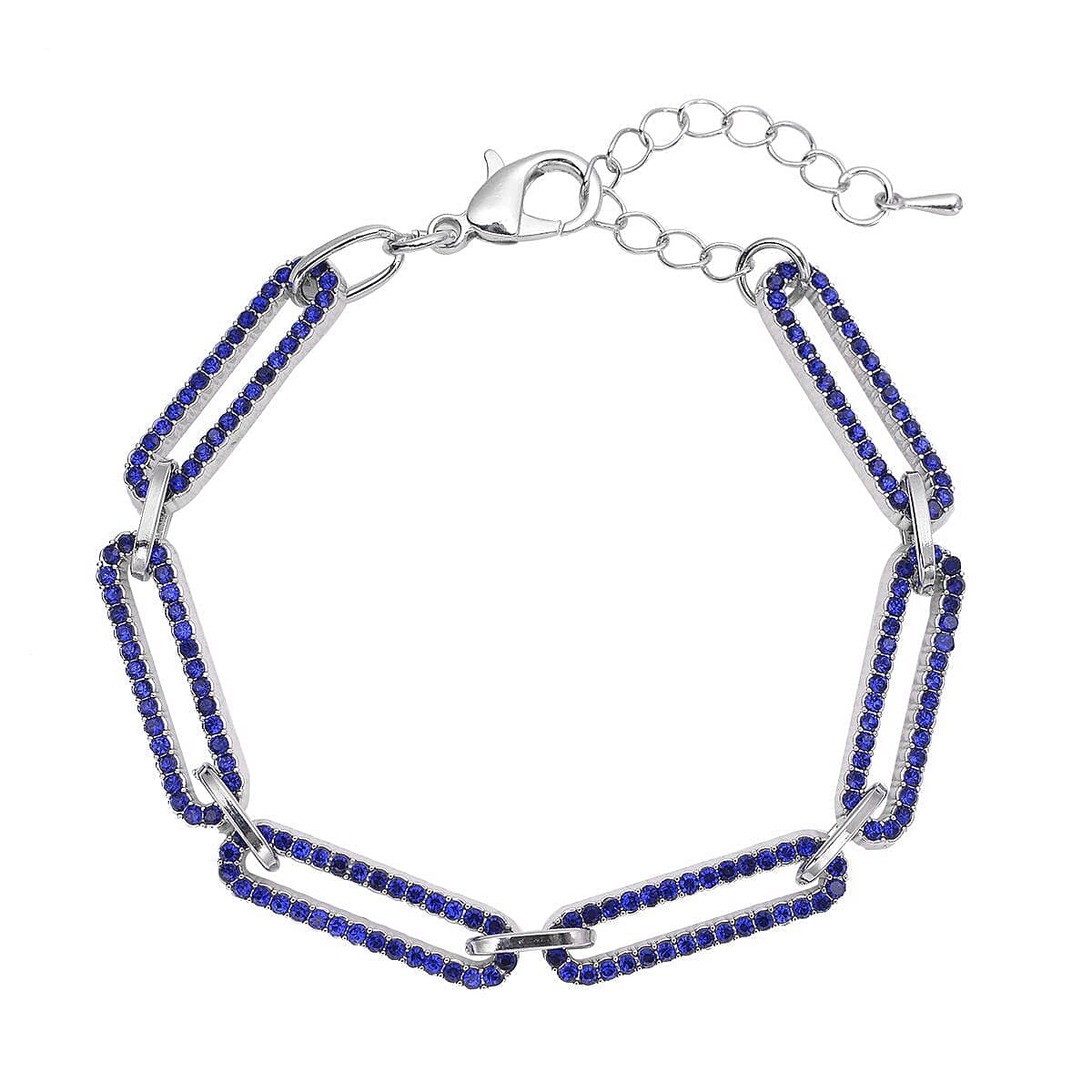 Blue Austrian Crystal Paper Clip Chain Bracelet in Silvertone (7.50-9.50 Inches)