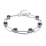 Blue Austrian Crystal Paperclip Chain Bracelet in Silvertone (7.5-9.5 Inches)