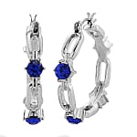Blue Austrian Crystal Paperclip Chain Hoop Earrings in Silvertone