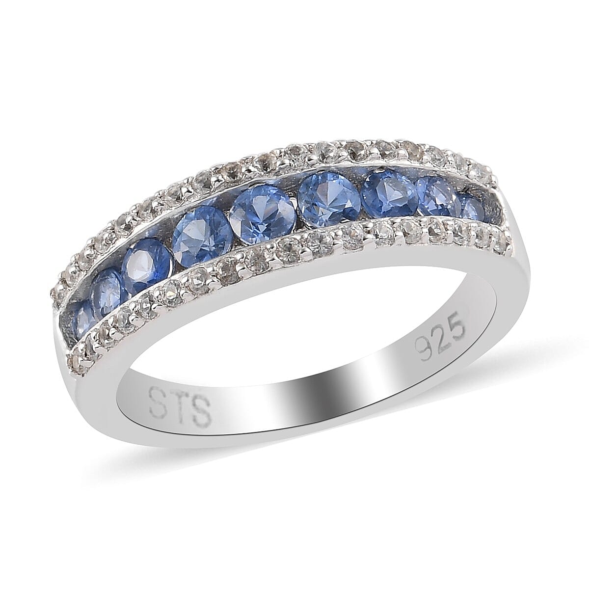 Blue Ceylon Sapphire and White Zircon Ring in Platinum Over Sterling Silver 0.90 ctw
