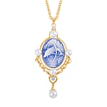 Blue Color Cameo and Multi Gemstone 6.00 ctw Necklace in Goldtone 20.5-22.5 Inches