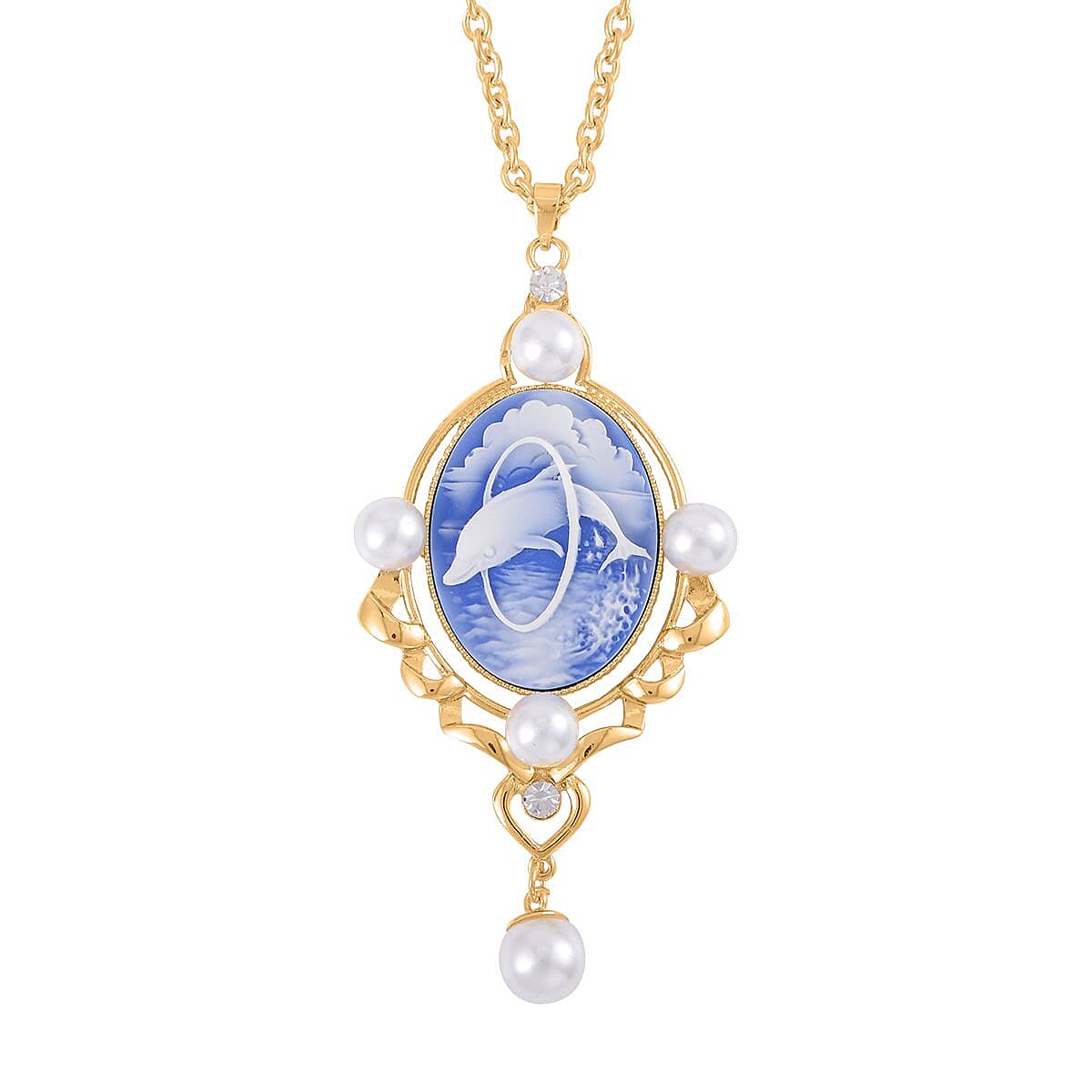 Flaunt your style with this blue cameo necklace crafted in durable metal. Its distinctive blue cameo creates a captivating centerpiece for sophisticated gatherings. You’ll love how this elegant dolphin necklace beautifully complements both casual and formal attire.
