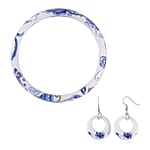 Blue Color Ceramic Bangle Bracelet (8.50 In) and Earrings in Stainless Steel
