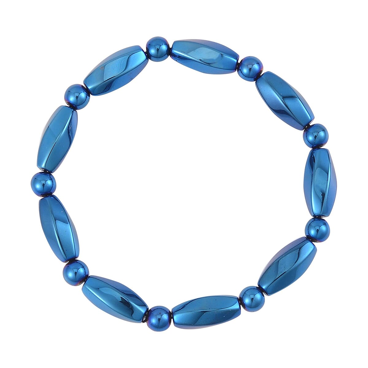Blue Color Hematite Beaded Stretch Bracelet 137.00 ctw