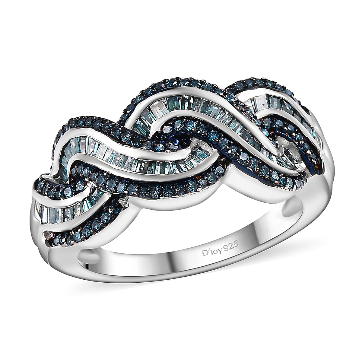 Blue Diamond 0.75 ctw Twisted Ring in Rhodium Over Sterling Silver (Size 8.0)