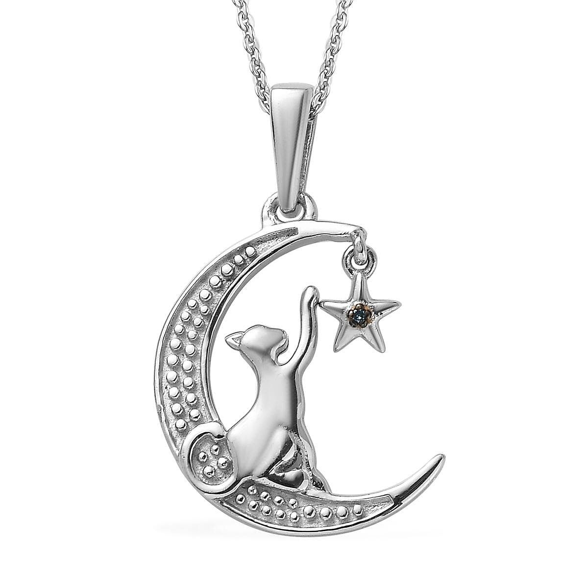 Blue Diamond Accent Moon & Star Pendant in Platinum Over Sterling Silver with Stainless Steel Necklace 20 Inches