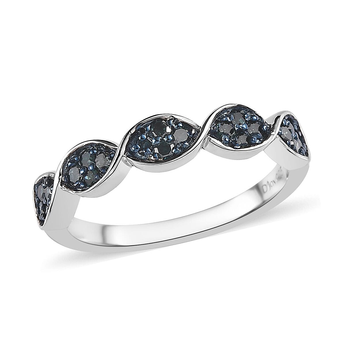 Blue Diamond Band Ring in Platinum Over Sterling Silver (Size 7.0) 0.25 ctw