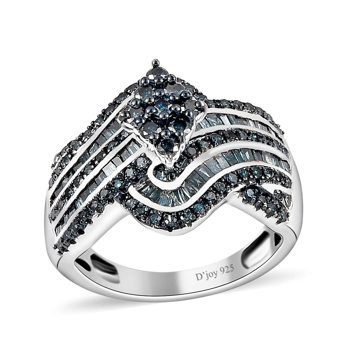 Blue Diamond Bypass Ring in Platinum Over Sterling Silver (Size 8.0) 1.00 ctw