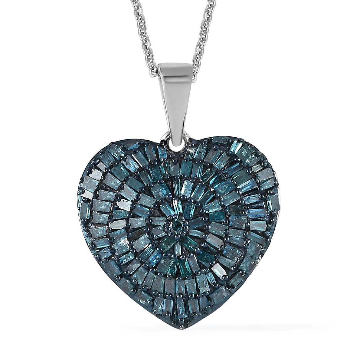 Blue Diamond Heart Pendant Necklace 20 Inches in Rhodium & Platinum Over Sterling Silver 1.00 ctw