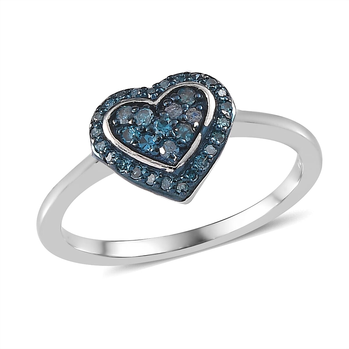 Blue Diamond Heart Ring in Rhodium and Platinum Over Sterling Silver (Size 8.0) 0.25 ctw