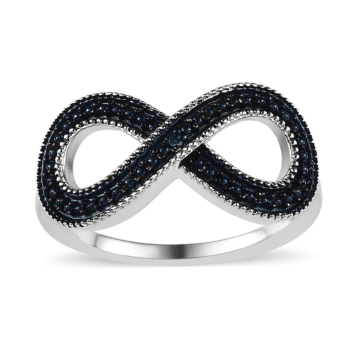 Blue Diamond Infinity Ring in Platinum Over Sterling Silver (Size 8.0)