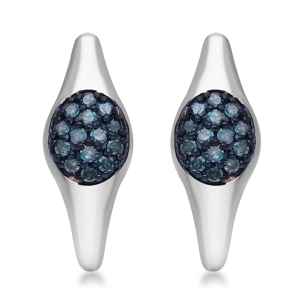 Blue Diamond J-Hoop Earrings in Platinum Over Sterling Silver 0.25 ctw