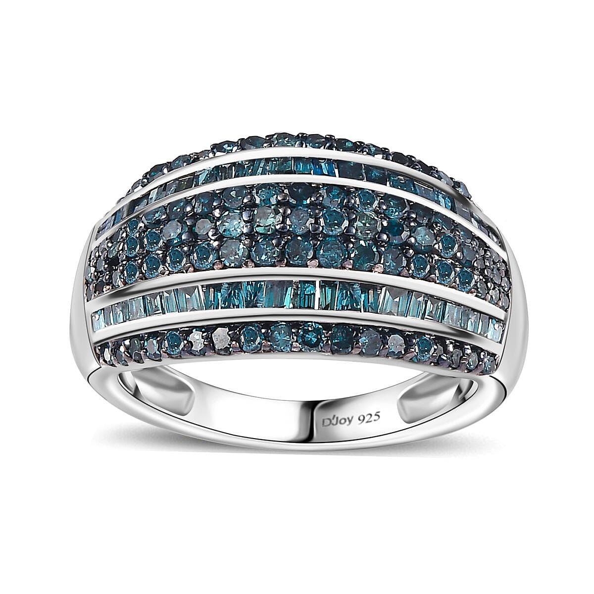 Blue Diamond Multi Row Ring in Platinum Over Sterling Silver (Size 7.0) 1.00 ctw