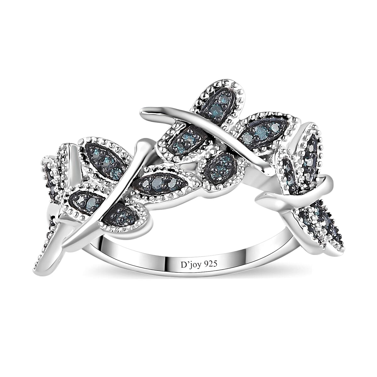 Blue Diamond Ring in Platinum Over Sterling Silver (Size 10.0) 0.25 ctw