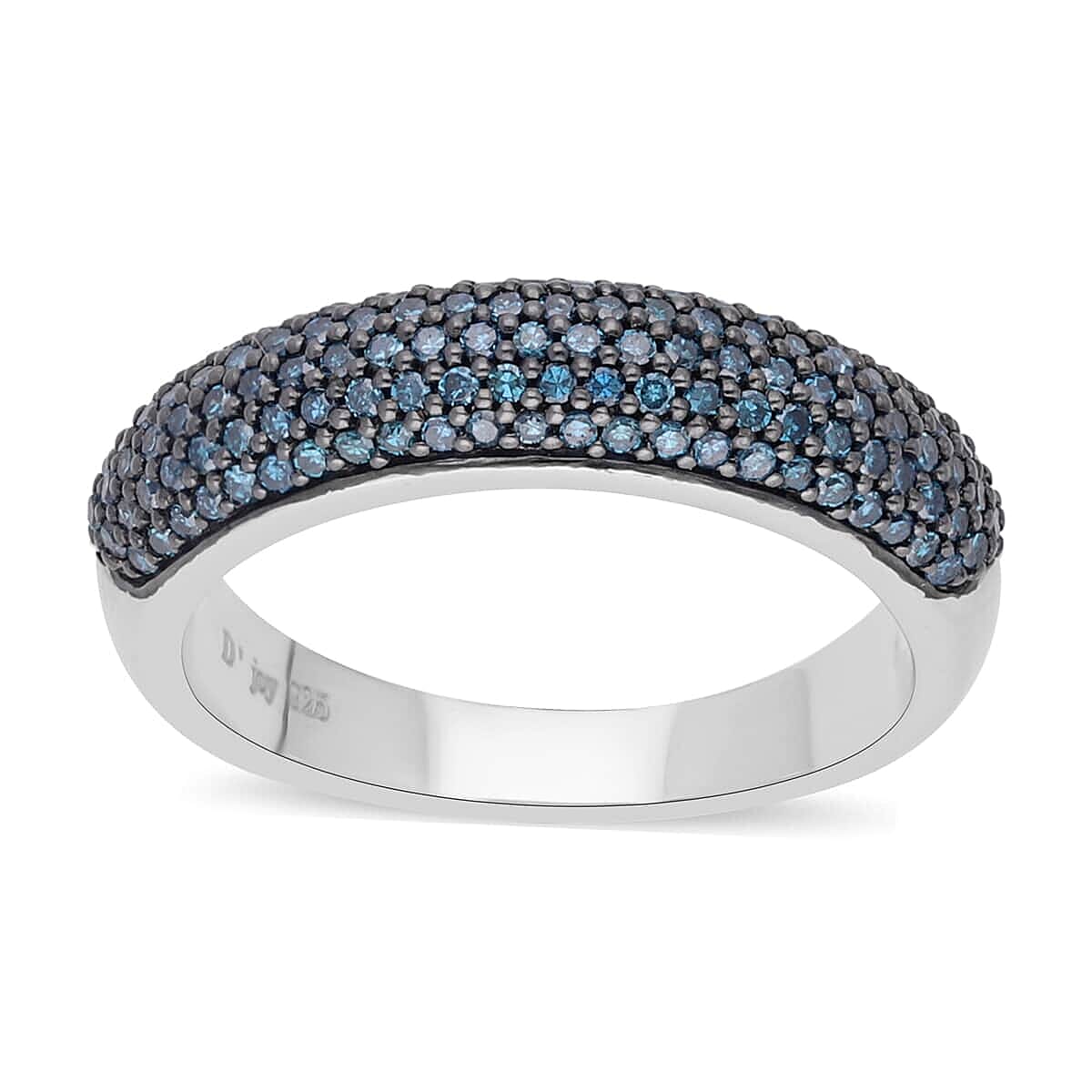 Blue Diamond Ring in Platinum Over Sterling Silver (Size 7.0) 0.50 ctw