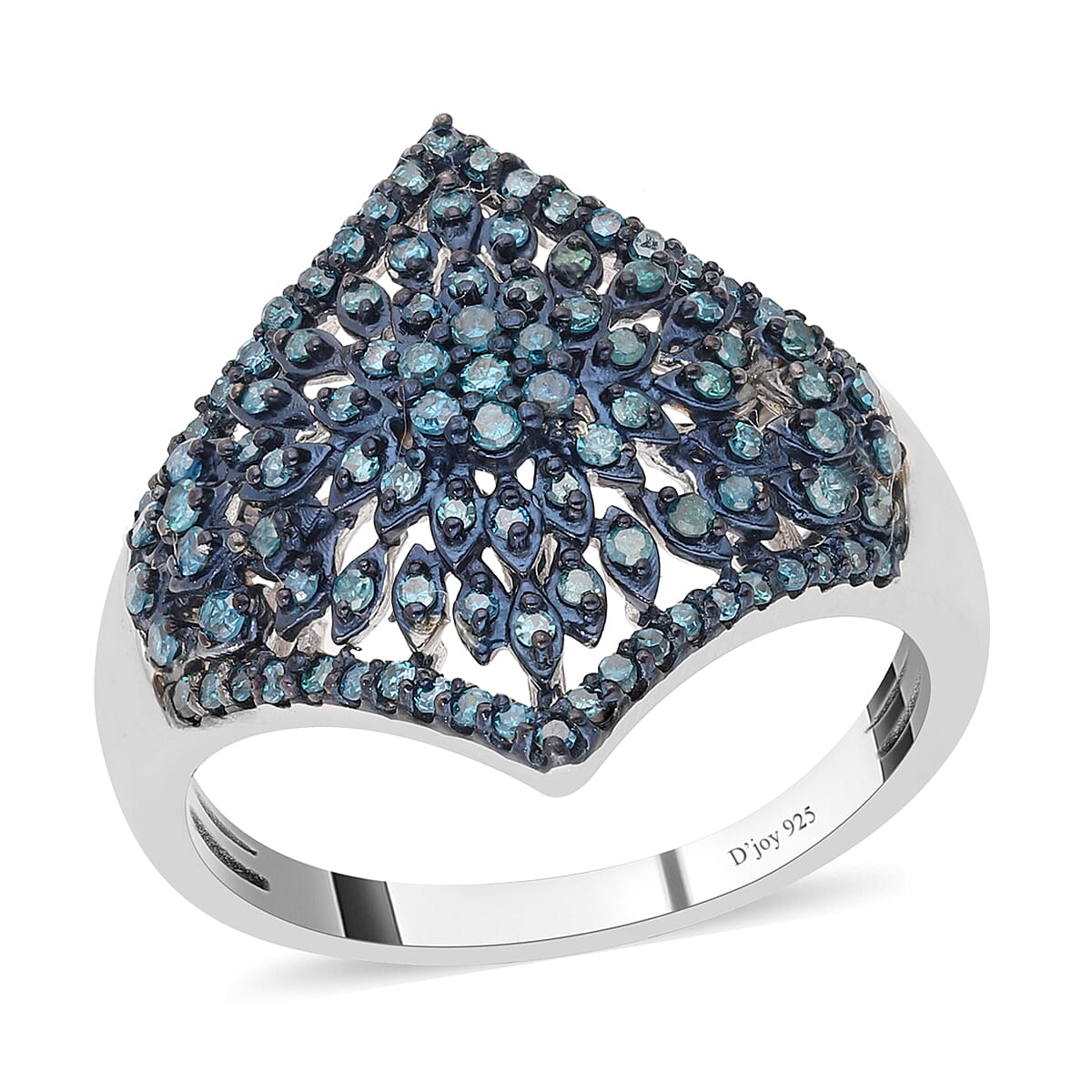 Blue Diamond Ring in Rhodium and Platinum Over Sterling Silver 0.50 ctw