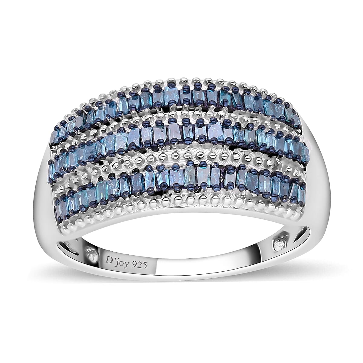 Symbolizing symmetry and balance, this diamond ring has an amazing look. This ring features rows of baguette-shaped diamonds arranged on the front side of the band giving an exotic look. Each gem is well placed and held perfectly in prongs giving an appealing look. Demarcating each row allows the precision and detailing to be seen clearly; this ring showcases milgrain beads in between. Diamonds are heirloom gems that can be passed on to the next generations and are an expression of everlasting love. This April birthstone gem is highly resistant to scratching and abrasions and has a perfect hardness making this sterling silver ring suitable for daily wear.