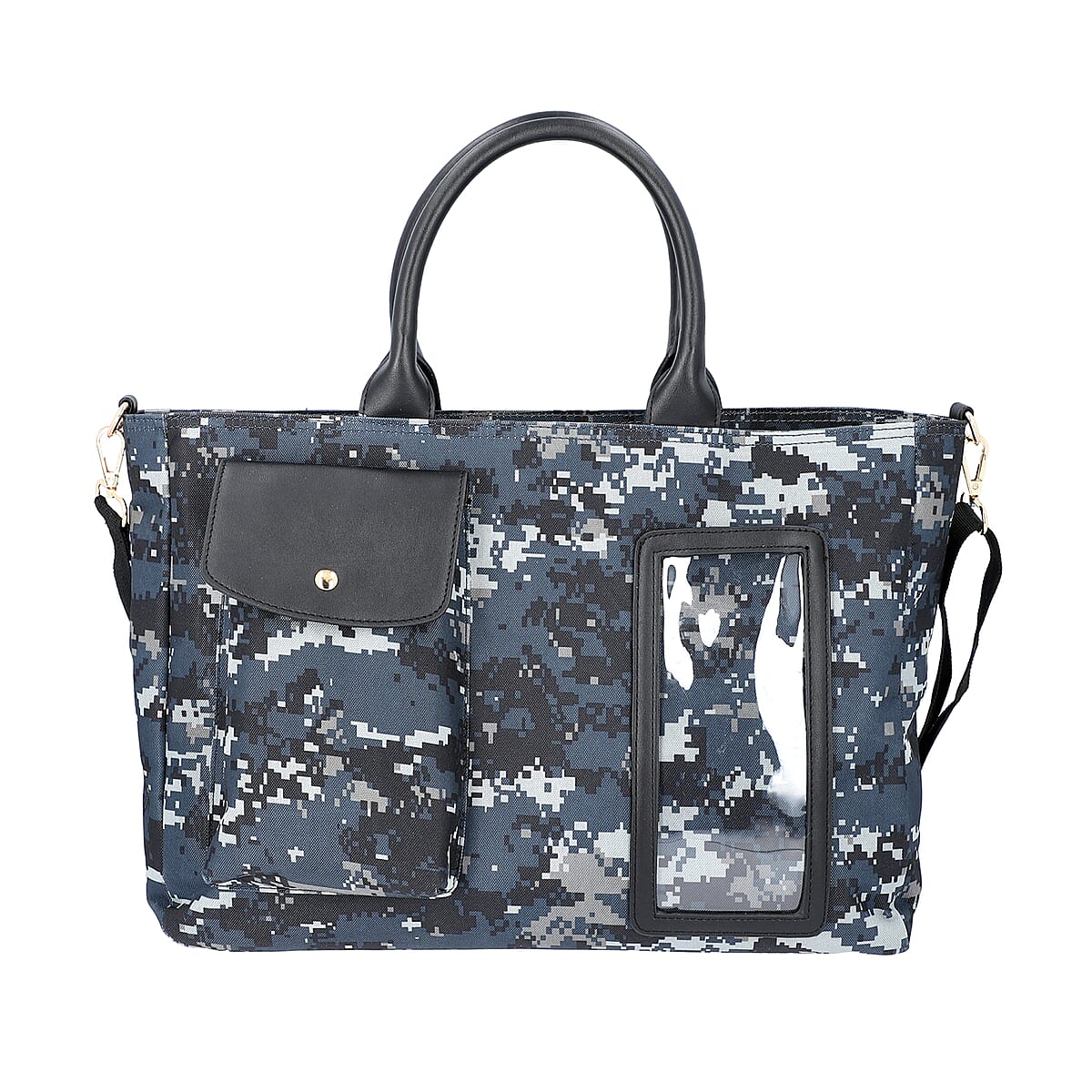 Blue Digital Camouflage Pattern Laptop Compartment Tote Bag with Detachable Shoulder Strap