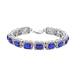 Blue Glass and Austrian Crystal Tennis Bracelet in Silvertone (7-9In)