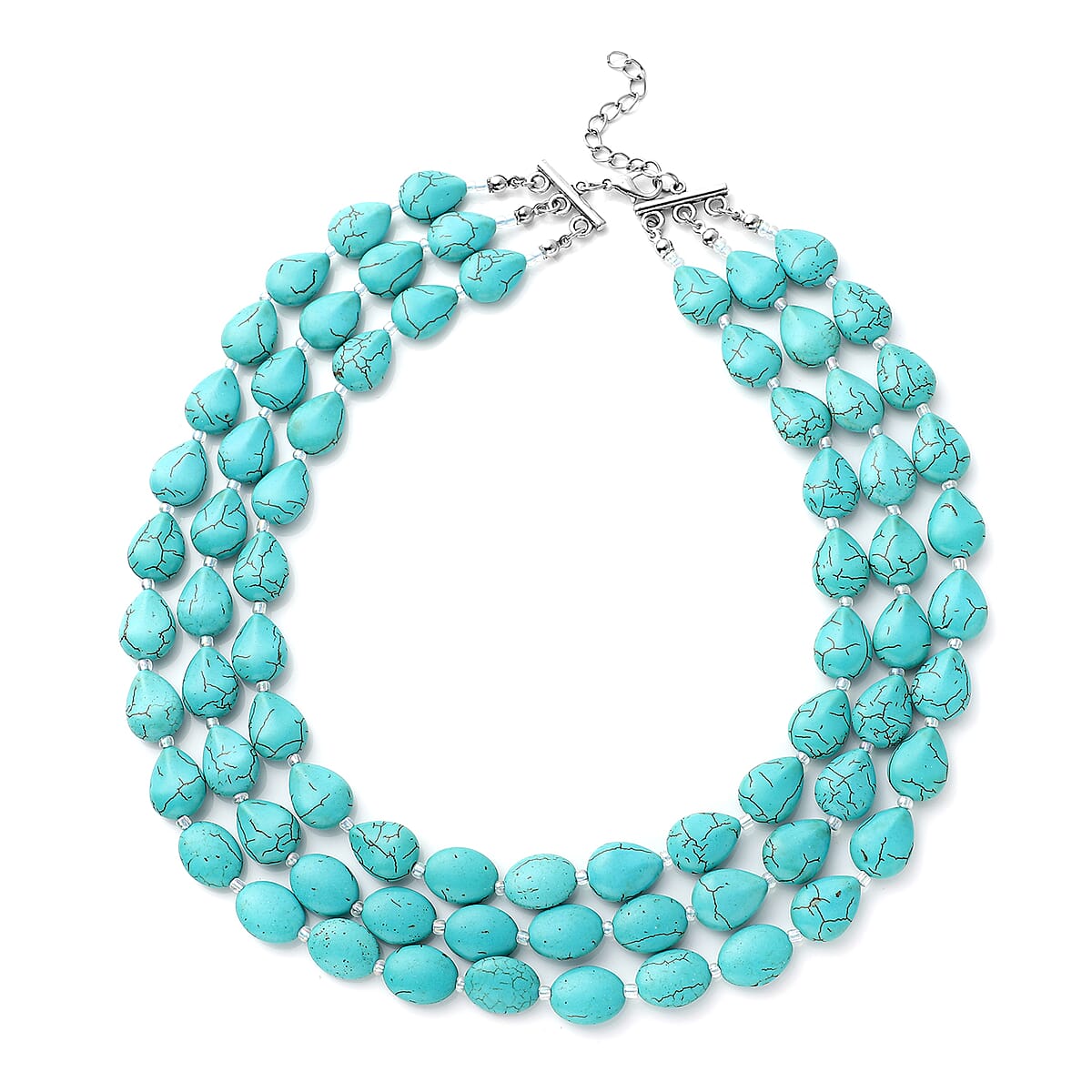 Wear royalty on your neckline with this fabulous three row blue howlite beaded necklace. The jewel is a perfect blend of subtle glamour and grace. With simulated aurora borealis mystic topaz, the necklace adds a dynamic flair to your ensembles.