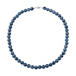 Blue Jasper 8mm Beaded Necklace 18 Inches in Rhodium Over Sterling Silver 250.00 ctw