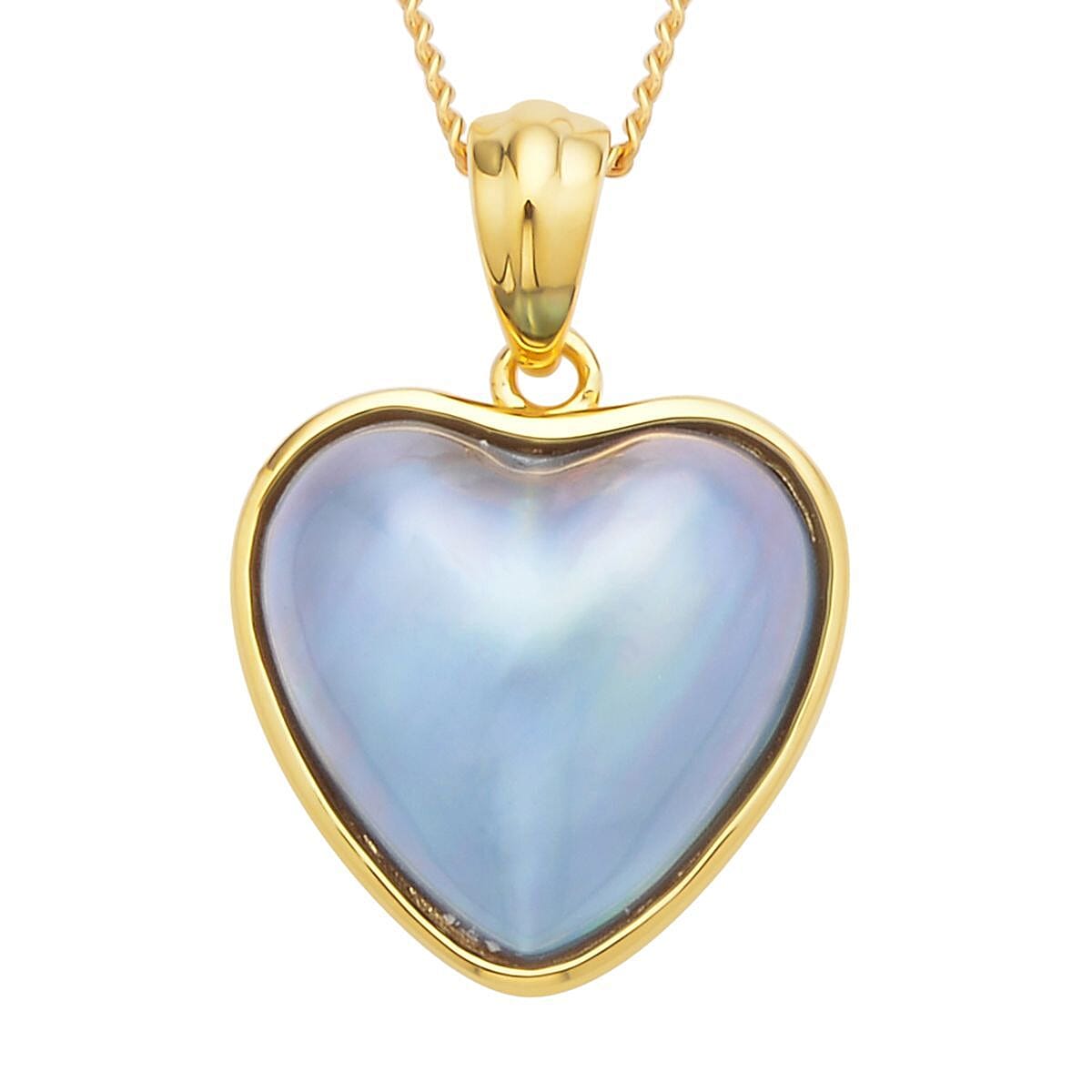 Blue Mabe Pearl Heart Pendant Necklace 18 Inches in Vermeil Yellow Gold Over Sterling Silver
