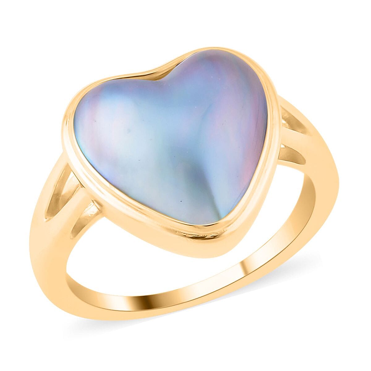 Blue Mabe Pearl Solitaire Heart Ring in Vermeil YG Over Sterling Silver (Size 7.0)