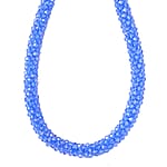 Blue Magic Color Glass Beaded Necklace 20-22 Inches in Silvertone