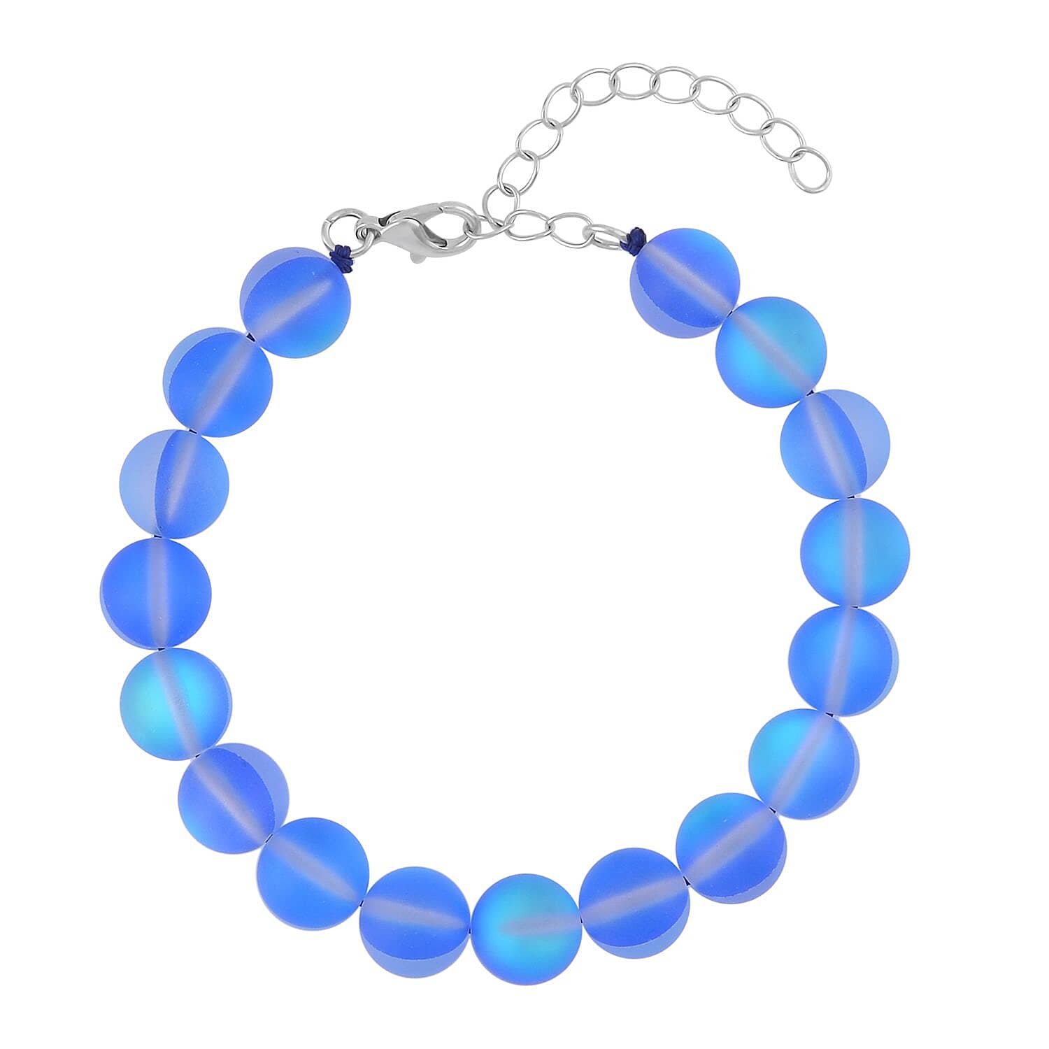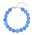 Blue Magic Color Glass Beaded Stretch Bracelet with Lobster Lock in Rhodium Over Sterling Silver (7.5-8.5In)