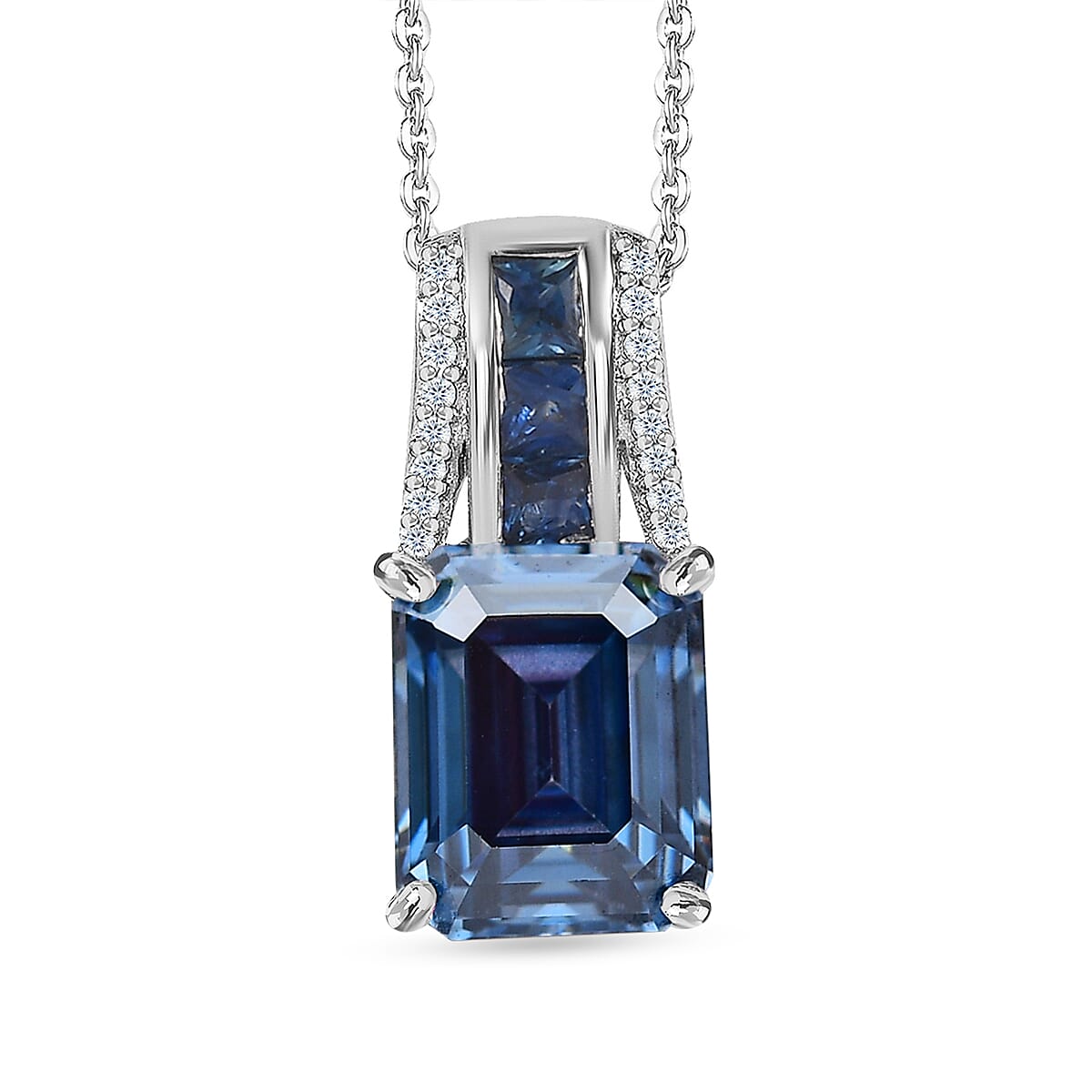 Blue Moissanite and Multi Gemstone Bridge Pendant Necklace 20 Inches in Platinum Over Sterling Silver 4.20 ctw