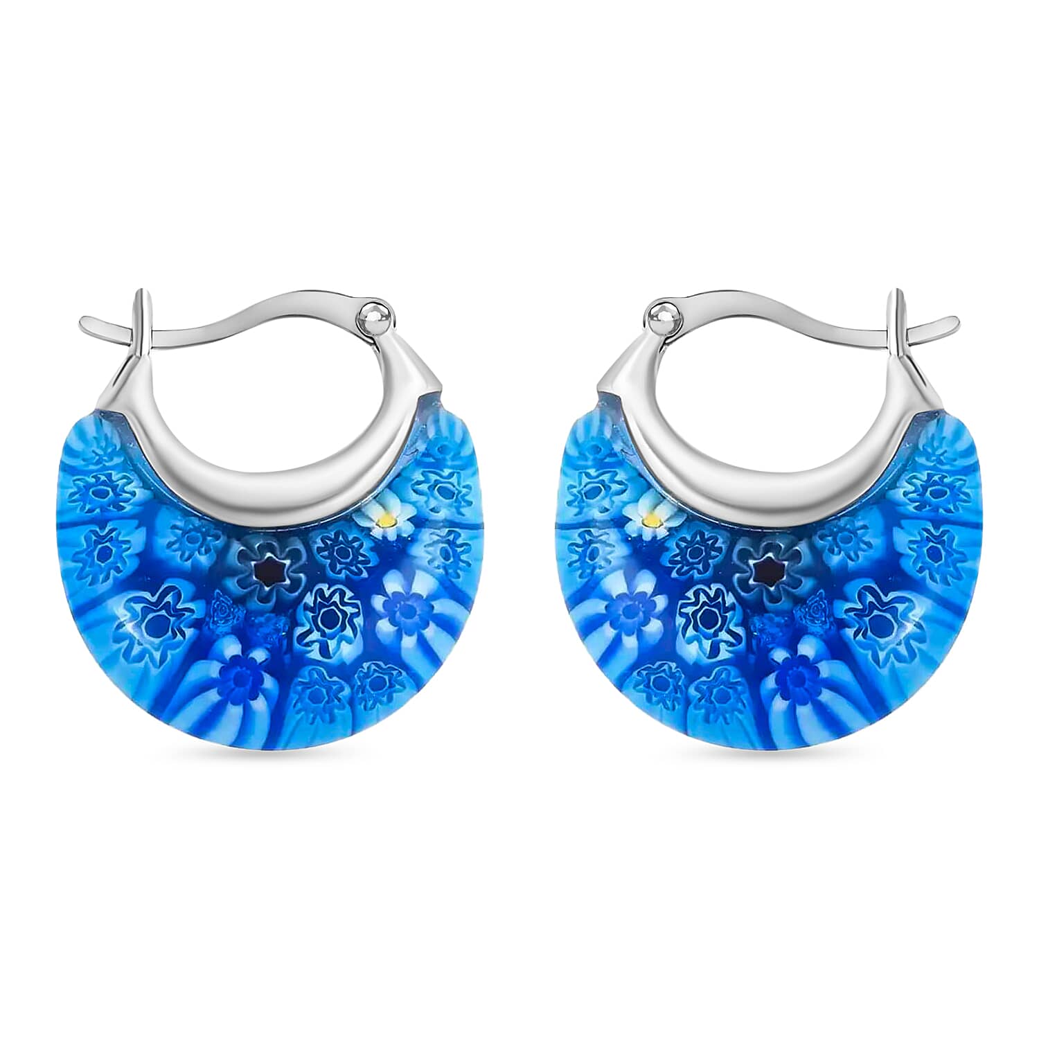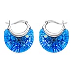 Blue Murano Style Basket Hoop Earrings in Stainless Steel