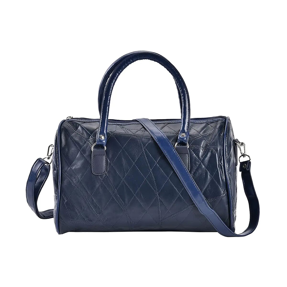 Blue Patchwork Lambskin Leather Tote Bag with Handle Drop and Detachable Shoulder Strap