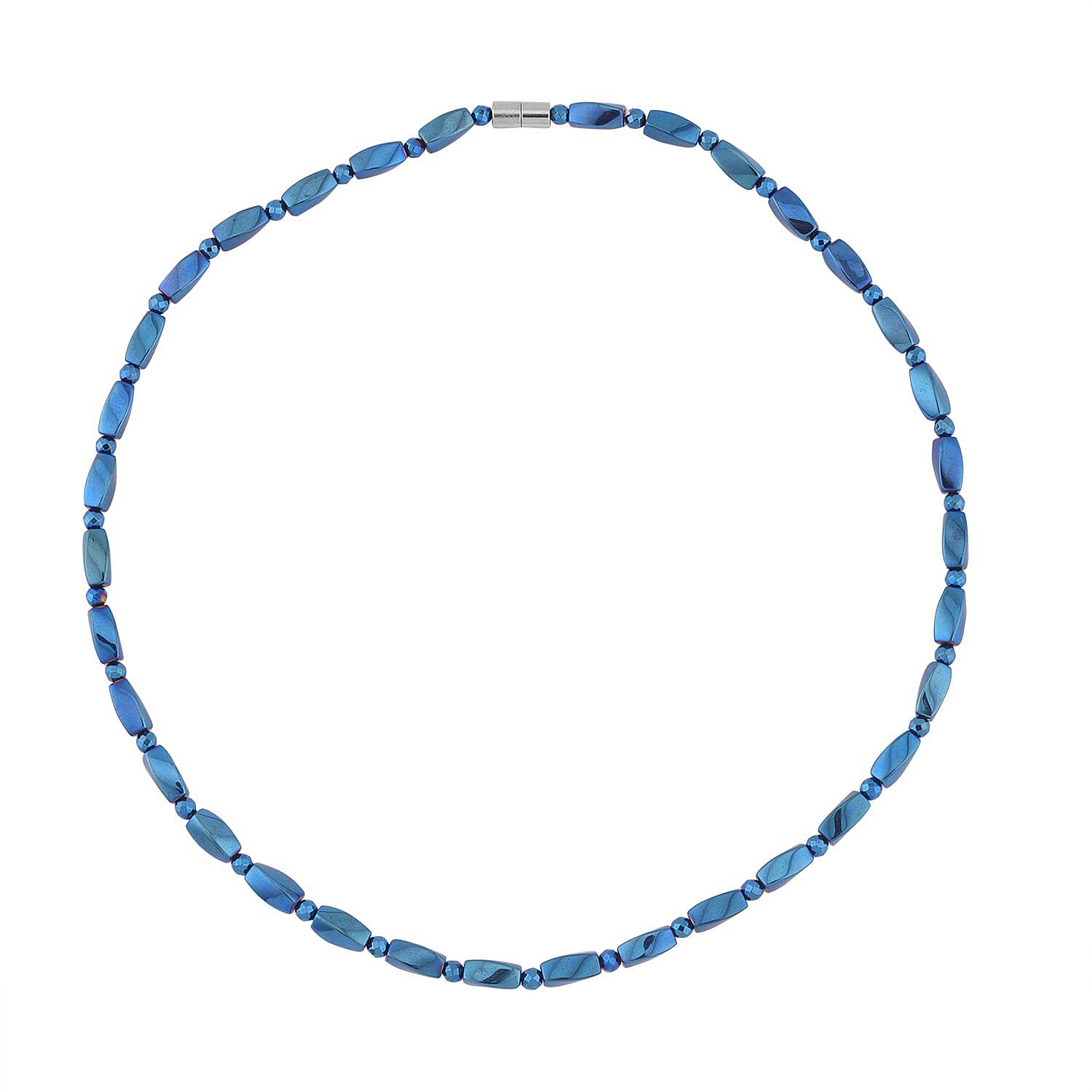 Blue Plated Hematite 221.00 ctw Beaded Necklace with Magnetic Clasp in Silvertone 20 Inches