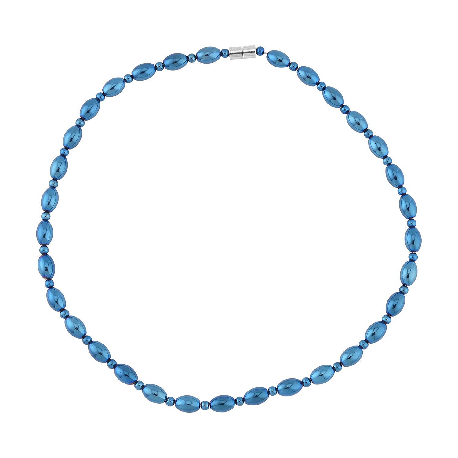 Blue Plated Hematite 326.50 ctw Beaded Necklace with Magnetic Clasp in Silvertone 20 Inches