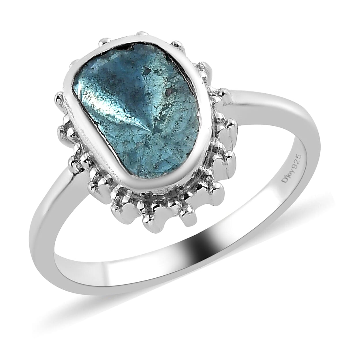 Blue Polki Diamond Solitaire Ring in Platinum Over Sterling Silver (Size 10.0) 0.50 ctw