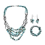 Blue Seed Bead Earrings and Wrap Bracelet and Multi Strand Necklace in Stainless Steel 22 Inches