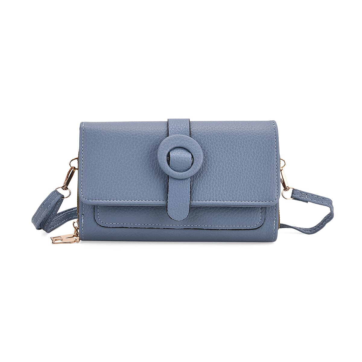Blue Solid Faux Leather Crossbody Wallet with Shoulder Strap