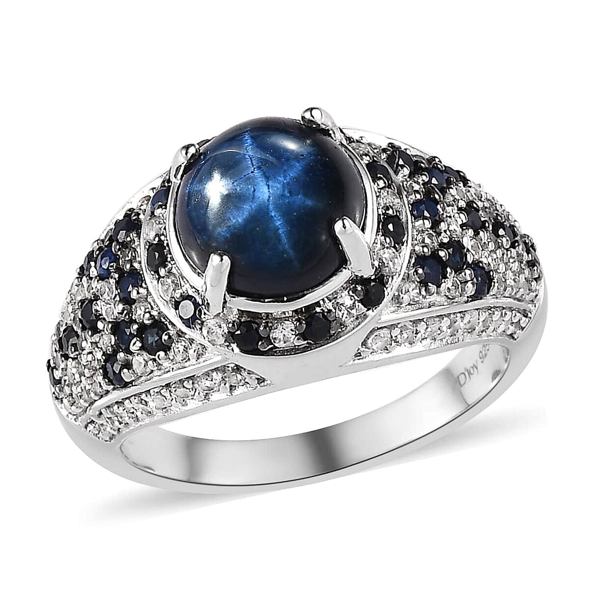 Blue Star Sapphire (DF) and Multi Gemstone Ring in Platinum Over Sterling Silver (Size 8.0) 4.75 ctw
