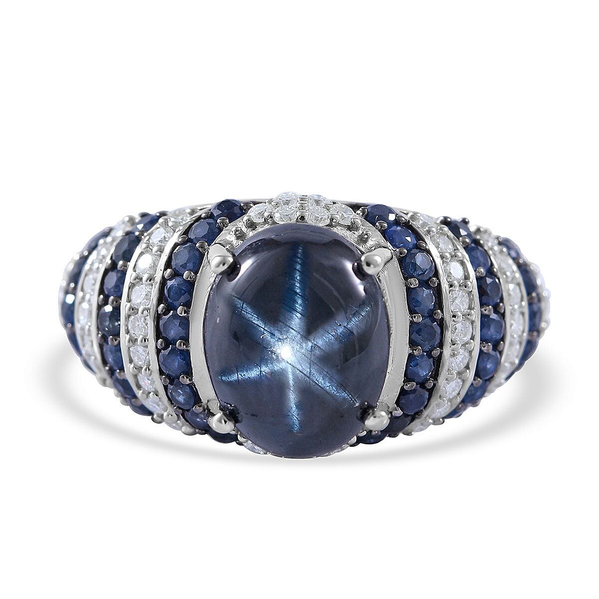 Blue Star Sapphire (DF) and Multi Gemstone Ring in Platinum Over Sterling Silver (Size 9.0) 6.15 ctw
