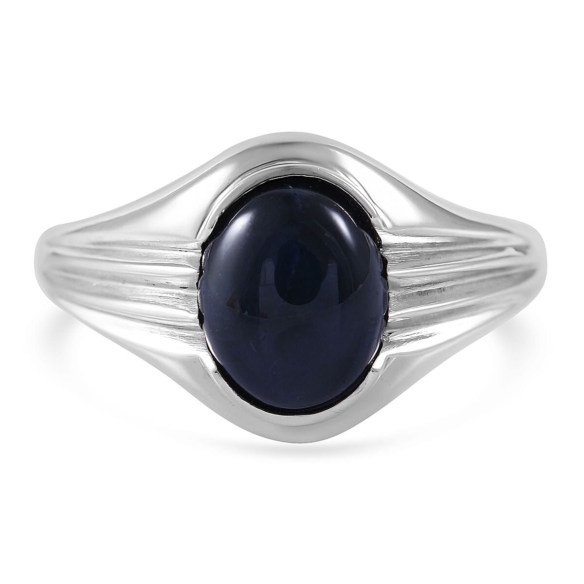 Blue Star Sapphire (DF) Ring in Platinum Over Sterling Silver (Size 10.0) 5.50 ctw
