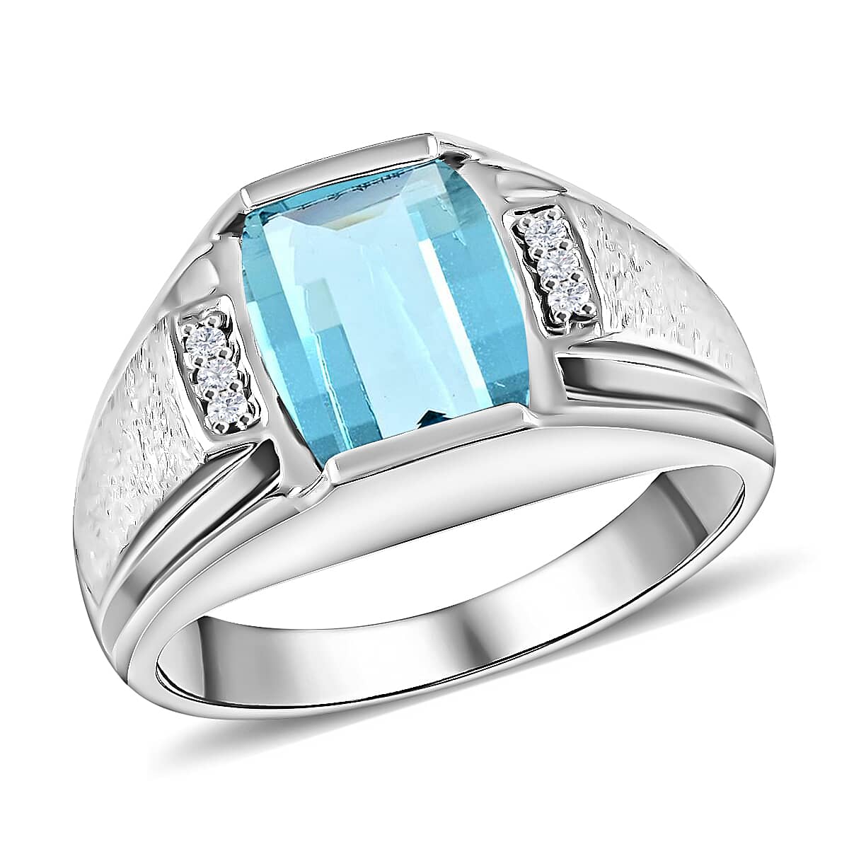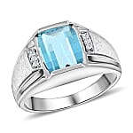 Blue Topaz and Diamond Men's Ring in Sterling Silver 2.50 ctw (Delivery in 10-15 Business Days)