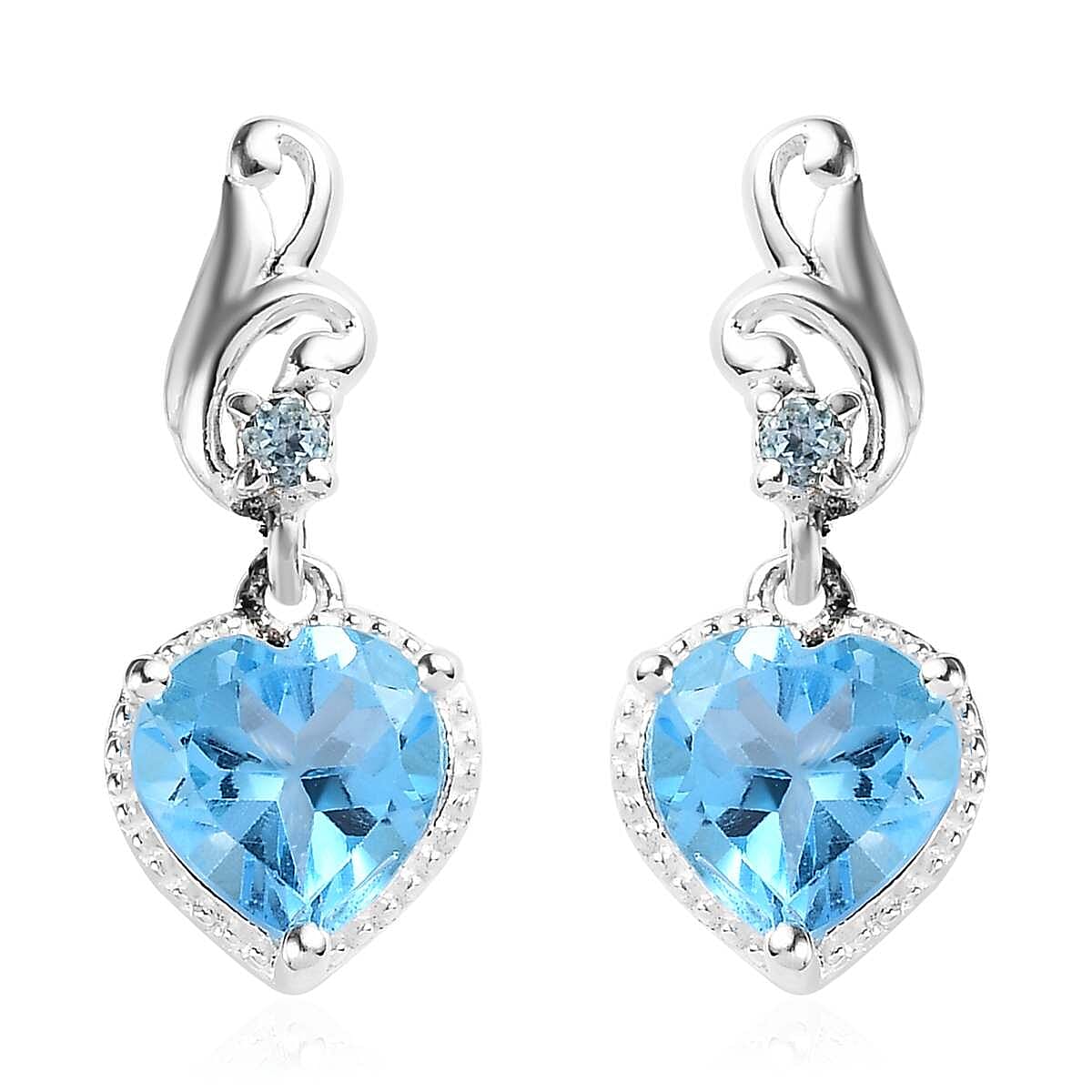 Blue Topaz Heart Dangling Earrings in Sterling Silver 3.15 ctw